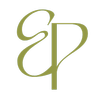 Stylized letters 'E' and 'P' intertwined in a decorative script with a burnt orange color.